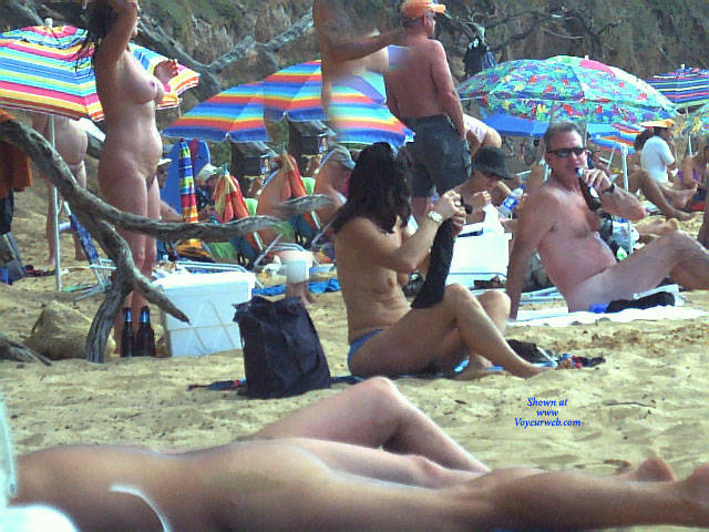 He should have used a better camera, but brava and much respect to all women who have the self-confidence to go fully nude -- or at least "topless" -- at a public beach! NADA to all others!