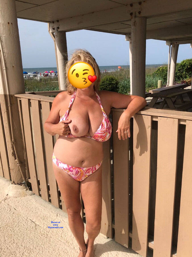 Wife and I went to the beach during the 4th of July. Got some nice pics of her in public flashing. As u can see, there are people around in some of the shots!!! Very erotic!