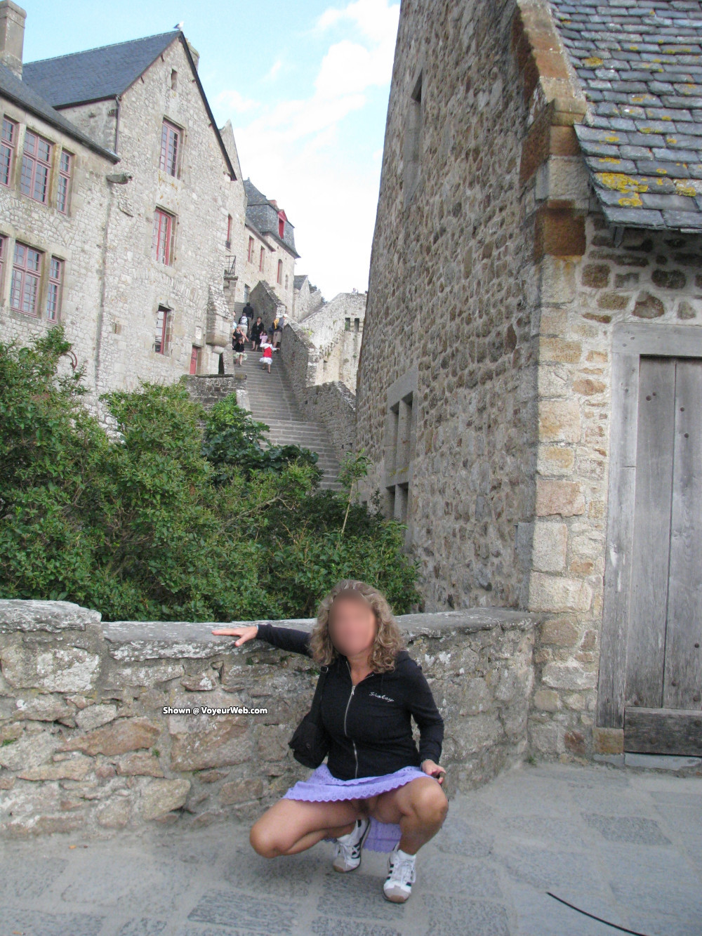 Lisa Melagio strips and pees outdoors in the countryside near Mont Saint Michel and performs upskirt without panties in the city.....