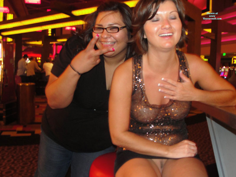 We thought we'd dip back into some pictures that we took in Vegas earlier this summer. This was from one fun night at Planet Hollywood! Maybe the "eye in the sky" caught our fun??? Some of the other gamblers definitely grabbed an eyeful - one guy asked to take a picture and after looking at it on his camera said "you know I can see your boobs, right?"... yup, just the way we like it!!! =)xoxoxoxoxoxox ~ Skirt Flirt