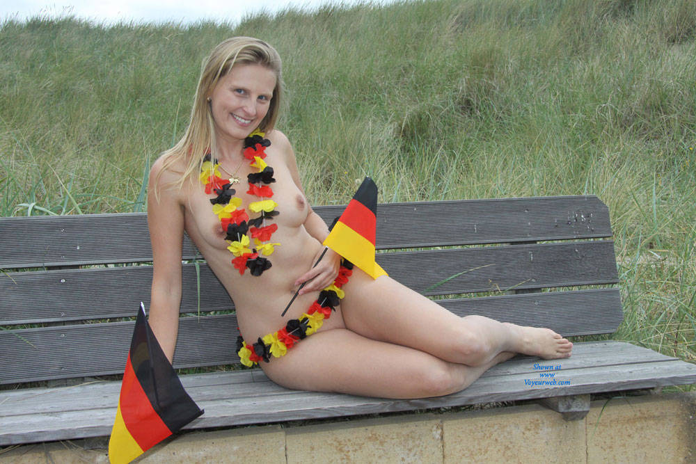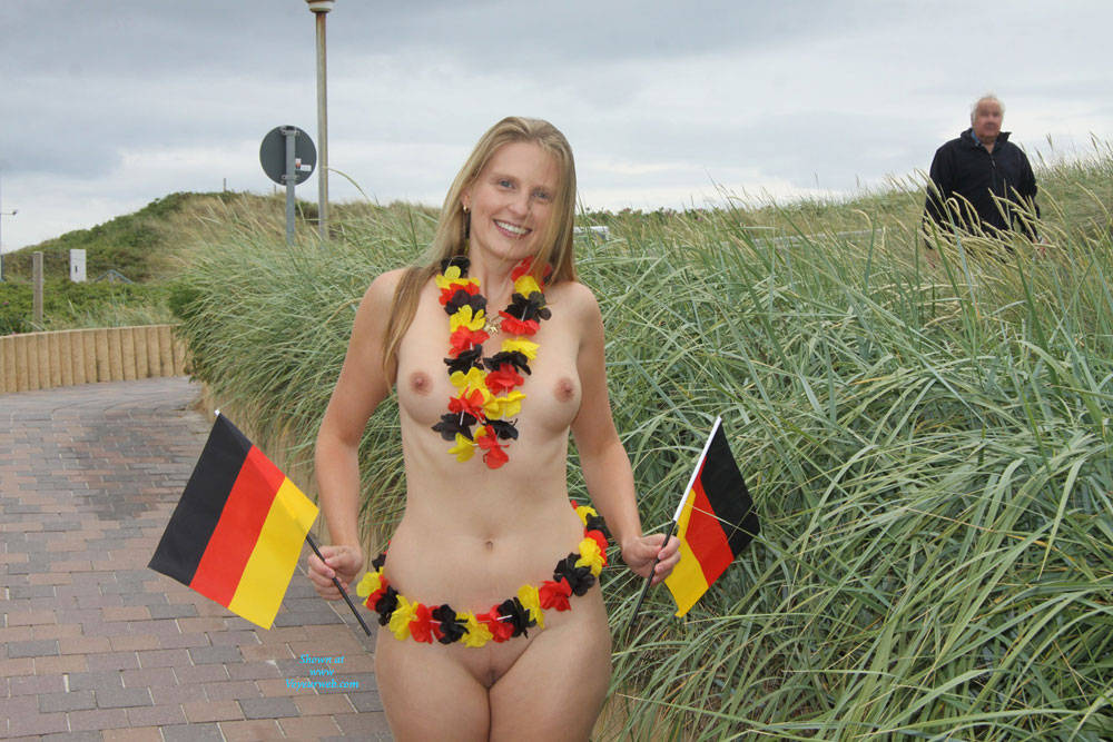 Dear all, This time we have a special contri for you: FIFA World Cup. On our holiday last month on the German island 'Sylt', Bri went out to the public to promote the FIFA World Cup. The people around were very happy to see a naked girl only covered with the German flags - respectively covered with nothing. :) We hope you do not down-vote us for the German flags. Please rather consider the flags to represent your own countries! Thanks :) Not only do we wish all the best to the German team but also to all other teams! Come and join us on our little sightseeing tour on Sylt ... Cheers, Bri & Tom